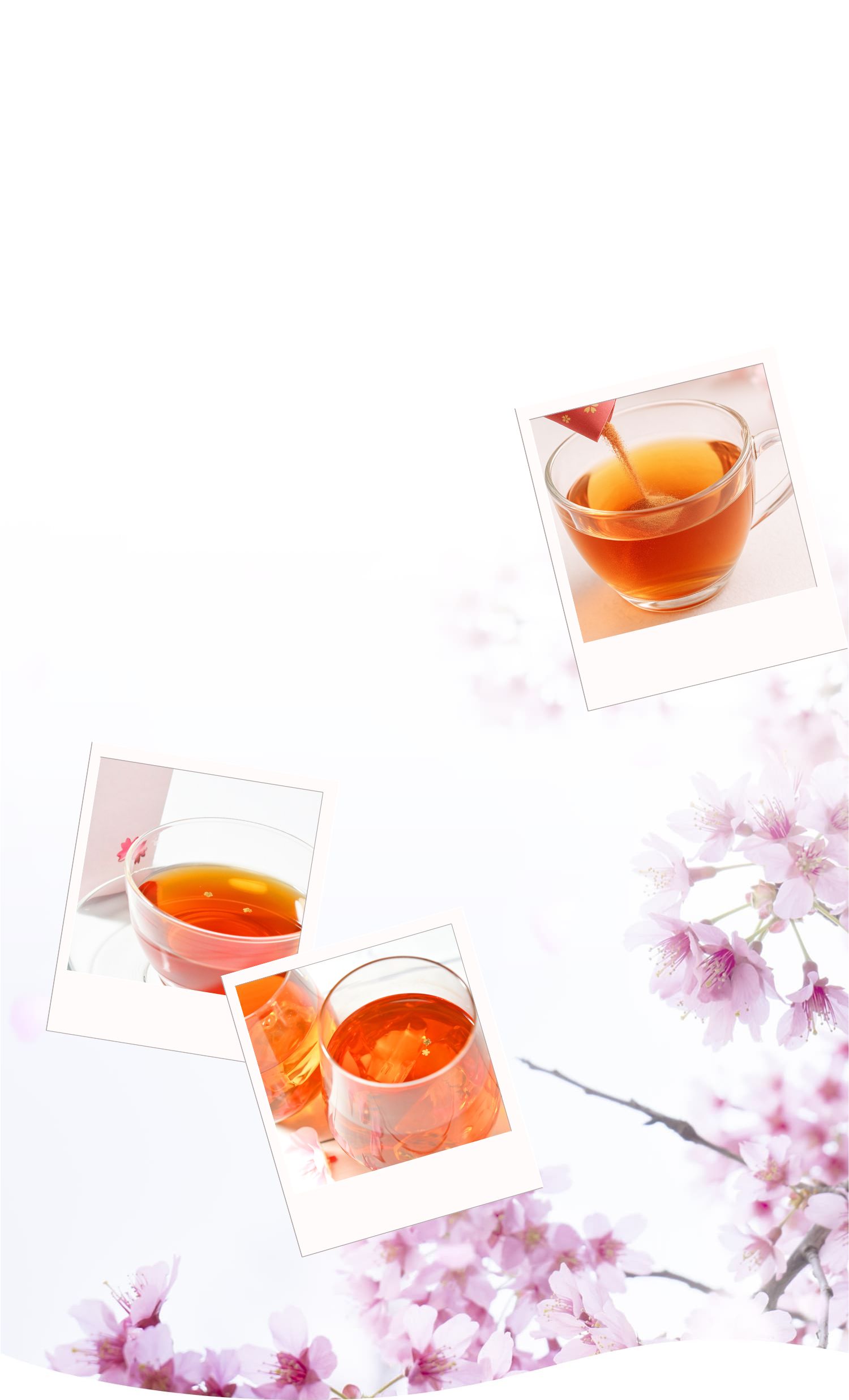 [アイス]サクラ紅茶1本(1g)を100mLのお水で溶かして氷を入れたグラスに注いでお召し上がりください。